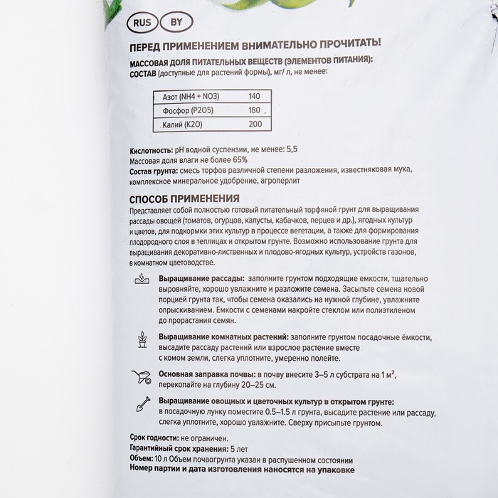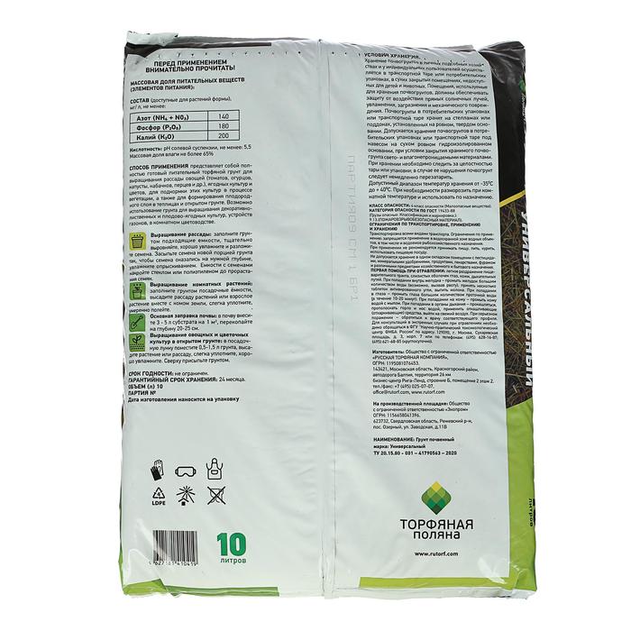 Производитель: Торфяная поляна; Габариты: 40 x 30 x 3,5; Доставка: Платная; Страна: Россия; В боксе: 1 шт; Состав: См. на упаковке; Материалы: см. на упаковке; Фасовка: по 1 шт; Индивидуальная упаковка: Пакет; Сертификат: Не подлежит сертификации; Вес/Объём: 10 л