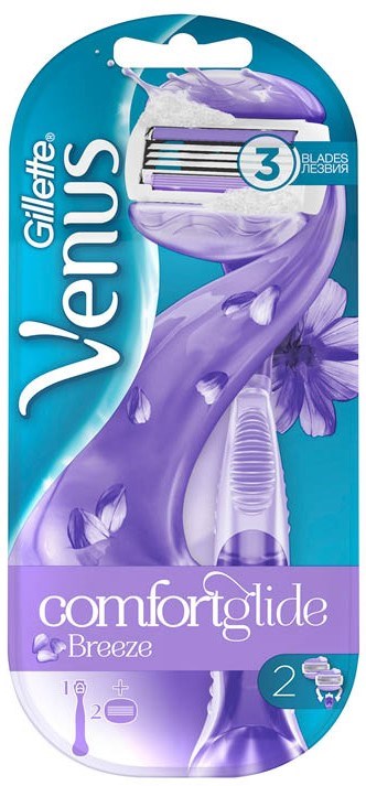 Женская бритва Gillette Venus Breeze для комфортного скольжения. Благодаря трем повторяющим изгибы тела лезвиям и разглаживающим кожу защитным подушечкам вокруг лезвий бритва обеспечивают гладкое и чистое бритье одним движением. Преимущества:• Гелевые полоски над и под лезвиями активируются при контакте с водой, обеспечивая плавное скольжение при каждом движении;• Бритва с тремя повторяющими изгибы тела лезвиями для гладкого бритья;• Гелевые полоски бритвы смазывают кожу насыщенной пеной с маслом фрезии для защиты кожи от порезов, царапин и раздражения;• Благодаря эргономичной ручке бритву удобно держать в разных положениях;• Полоска-индикатор, меняят цвет, показывая, когда пора менять лезвия. • Гелевая ручка с мягкой зоной захвата обеспечивает невероятный контроль и не выскользнет даже в душе. Любая сменная кассета Venus подходит к любой бритвенной ручке Venus, кроме Simply Venus.
