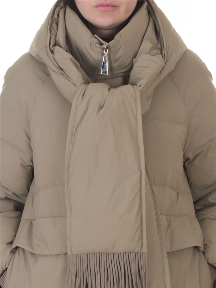 Вдоль рукавов регулировочные резинки с фиксаторами. Капюшон съемный на молнии, переходящий в уютный шарф.
