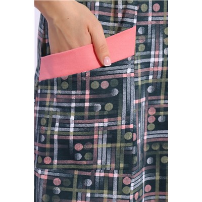 Халат женский с центральной застежкой на молнию. Рукава короткие на манжетах. Вырез горловины круглый обработан кантом. На полочках накладные карманы.
