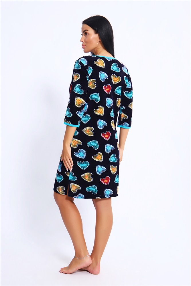 Состав: 80% хлопок, 20% п/э Модель: Халат 36847 Тип товара: халат Материал: велюр | велюр Бренд: Натали Суслова Карман: боковые Назначение: для дома Отделка: с карманами Рисунок: сердечки Рукав: рукав 3/4 Сезонность: лето | осень | весна | зима Силуэт: прямой | свободный Стиль: домашний Воротник: без воротника Застежка: молния Женский укороченный халатик выполнен из качественного велюра и модного дизайна. Велюр практичен, прост в уходе и использовании. Обладает высокой устойчивостью к механическим повреждениям. Ему свойственны характеристики натуральных тканей, что делает его использование комфортным. Материал гигроскопичен, хорошо пропускает воздух и сохраняет тепло. Кроме этого он не меняет форму и не вызывает аллергических реакций. Отличается мягкостью и приятной на ощупь текстурой. Материал прекрасно дышит. Носить такой халатик Вы сможете в любое время года. Надёжный замок на молнии сохраняет свои свойства в течении всего времени использования. Женственный вырез и 2 боковых кармана добавляют образу шарм и делают изделие удобным и практичным. Изысканный, в меру длинный халат подойдёт для любого типа фигуры. А так же будет идеальным подарком на любой праздник: Новый год, день рождения, 8 марта, 14 февраля. Рекомендуется стирать в деликатном режиме 30 С. Это поможет сохранить качество изделия на долгое время. Таблица размеров и веса