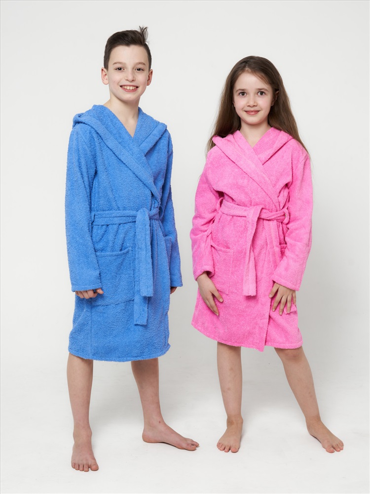Халат детский махровый с капюшоном синий