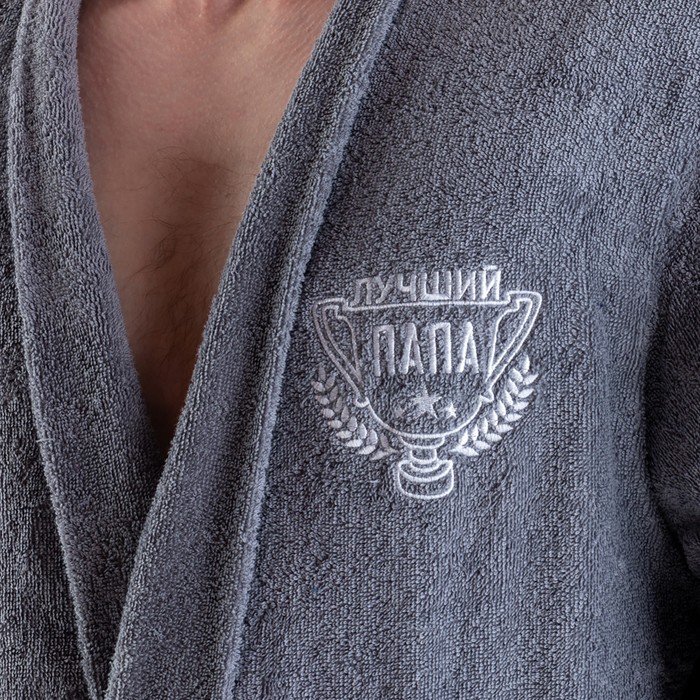 Халат махровый мужск. "Лучший папа" р-р 56-58, серый