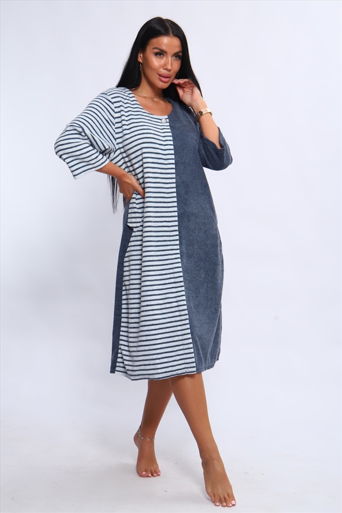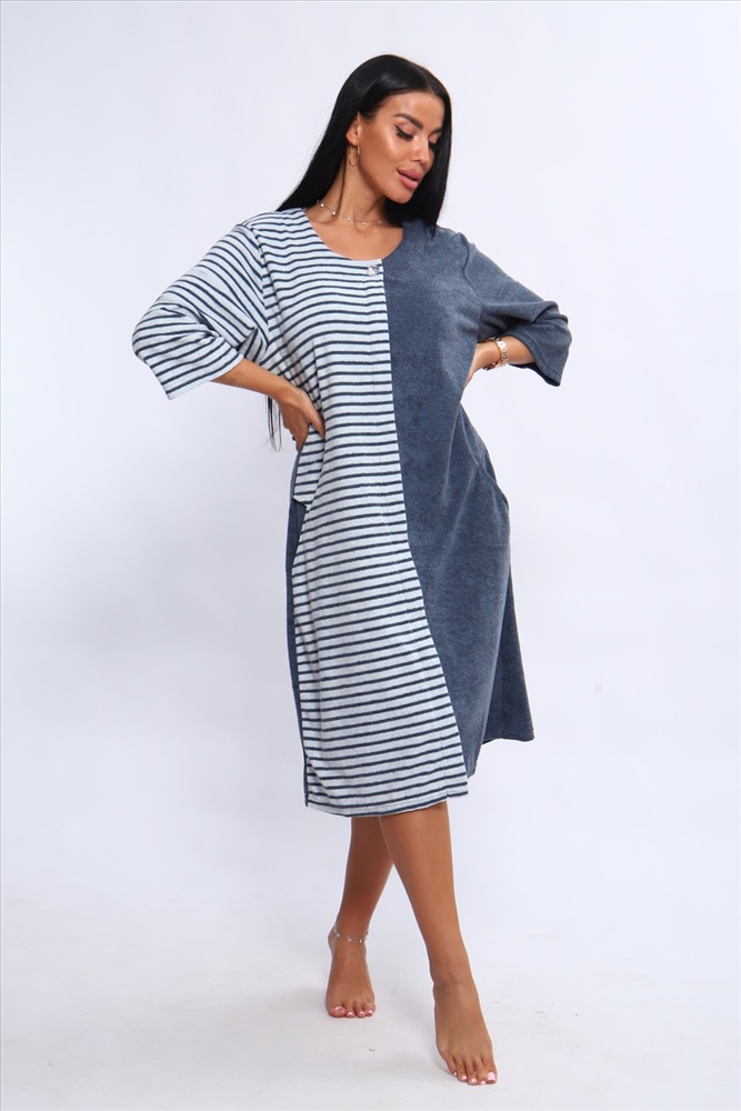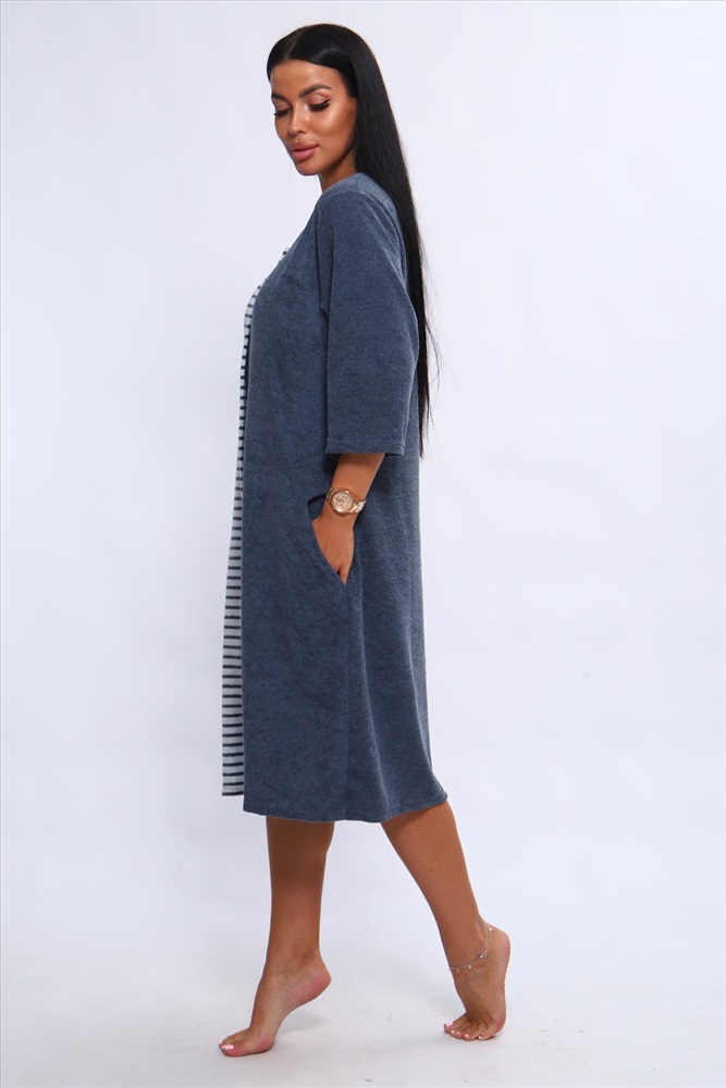 Состав: 80% хлопок, 20% пэ Модель: Халат женский 207 ИРИНА Тип товара: халат Материал: махра | махра Бренд: Моя любовь Длина: средняя длина Назначение: для дома Рисунок: колорблок | полоска | цветы Рукав: рукав 3/4 Сезонность: лето | осень | весна | зима Силуэт: свободный Стиль: домашний Воротник: без воротника Застежка: молния | пуговицы Халат женский махровый на молнии. Халат ткань состав 80% хлопок, 20% пэ, расцветка тренд сезона и года. Халат с двумя карманами, молния закрытая планкой на пуговице. Рукав 3/4, средняя длина. Таблица размеров и веса