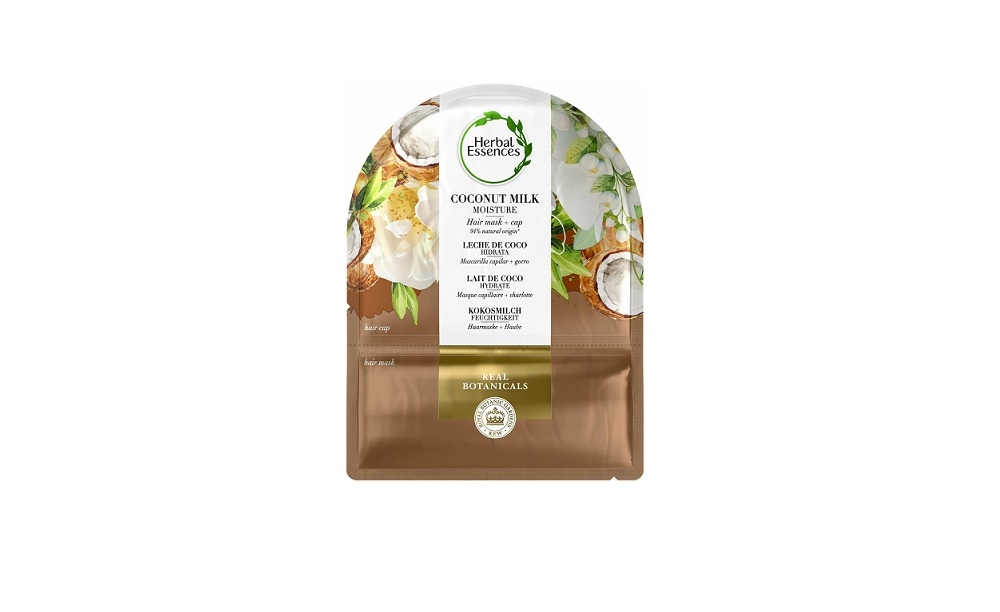 Новинка! Маска Herbal Essences Кокосовое Молоко с многоразовой шапочкой для наилучшего эффекта. На 90% состоит из натуральных ингредиентов* и включает в себя активный антиоксидант, который способствует бережному очищению и защите ваших волос, в то время как кокосовое молоко способствует увлажнению волос. Эта маска содержит 0 % парабенов, красителей, парафинов. Подходит для окрашенных волос.