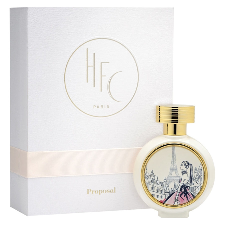 О такой долгожданной, заманчивой и романтичной прогулке по очаровательному Парижу рассказывает изысканная, нежная парфюмерная композиция Haute Fragrance Company Proposal. Ее настроение подчеркнуто тематическим флаконом, на котором изображена хрупкая девушка на фоне Эйфелевой башни. Аромат является новинкой - он увидел свет только в начале 2018 года. Его автором стал Vincent Ricord, чье представление о современной, прекрасной принцессе пленило даже самых взыскательных и искушенных ценителей искусства парфюмерии. Открывается пирамида ореховым пралине их сладкого миндаля с добавлением экзотических нот личи. Ягодные аккорды черной смородины гармонично соединяются со свежестью зеленого бергамота. В сердце треугольника расположились дорогие сорта черного чая, перемешанные с утонченным акцентом сочных сухофруктов. Цветочное благоухание композиции представлено белоснежным жасмином самбак в комбинации с чувственным гелиотропом. Легкая горчинка смолистых пачулей открывает базу, где дополняется дымчатыми бобами тонка. Ненавязчивая сладость ванили изумительно сочетатеся с нежностью ириса. За обворожительный шлейф, почувствовать который хочется снова и снова, отвечает необыкновенное тиковое дерево в сочетании с соблазнительным мускусом. Аромат Haute Fragrance Company Proposal стоит использовать весной.