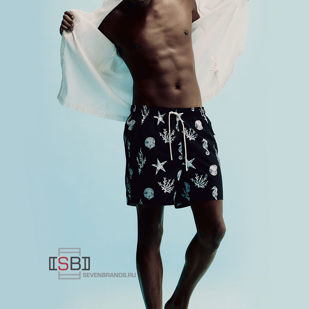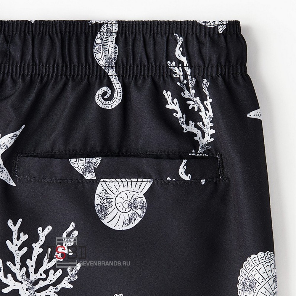 Плавки-шорты с резинкой и шнурком на талии, боковыми карманами, прорезным карманом сзади на липучке и штанинами длиной выше колена. Внутренние шорты из мягкой сетки.