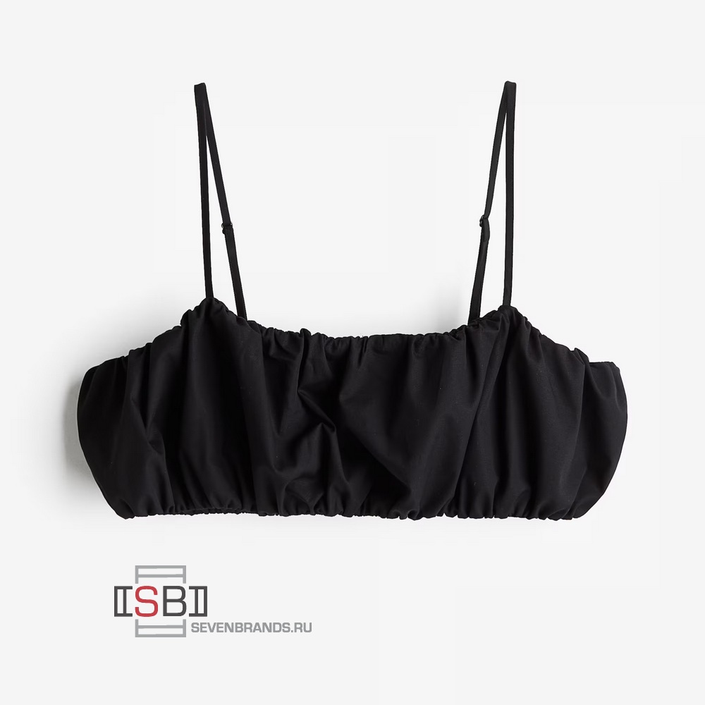 Облегающий топ-бралетт из плотного хлопкового поплина. Прямой крой сверху и узкие регулируемые бретели. Скрытая резинка сверху и по низу для создания пышного силуэта. Застежка-молния сзади.