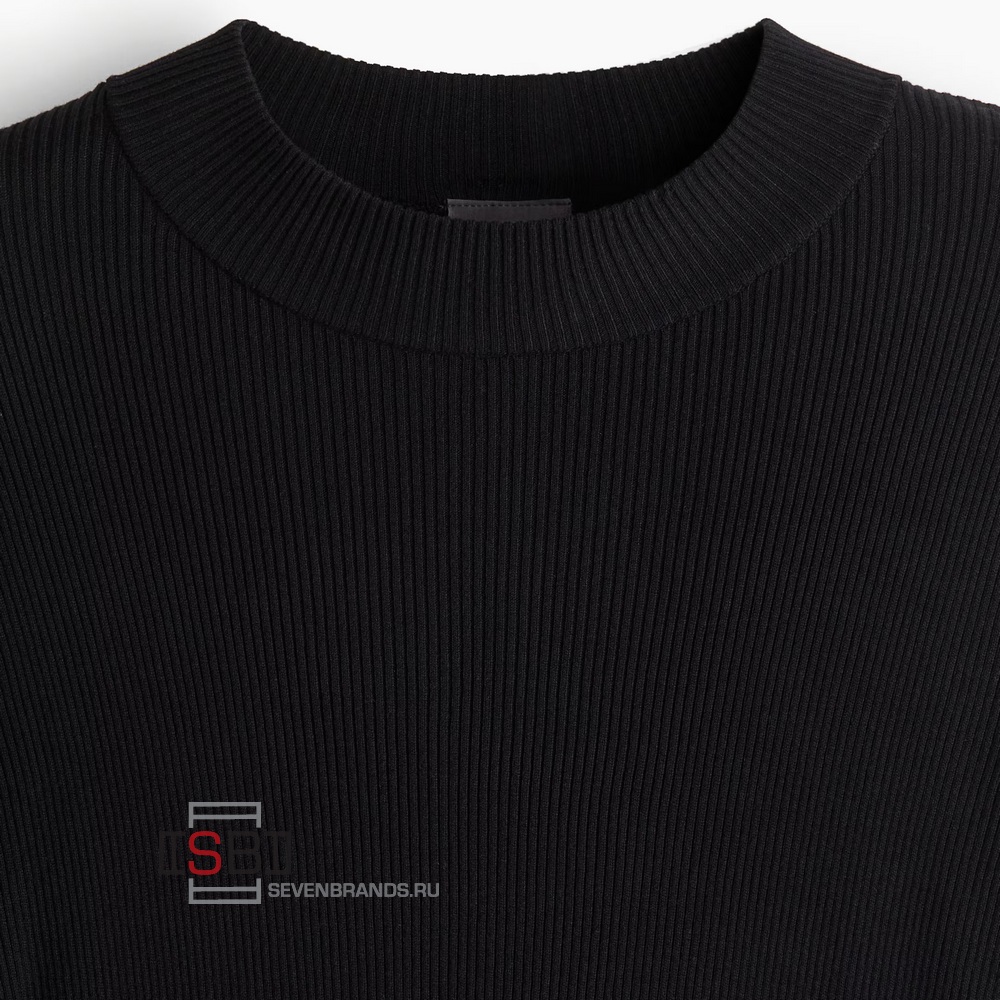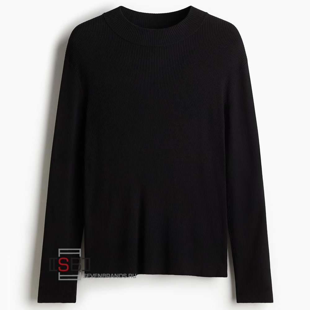 Облегающий свитер рубчатой вязки с приталенным силуэтом. Высокий воротник, длинные рукава и прямой подол.