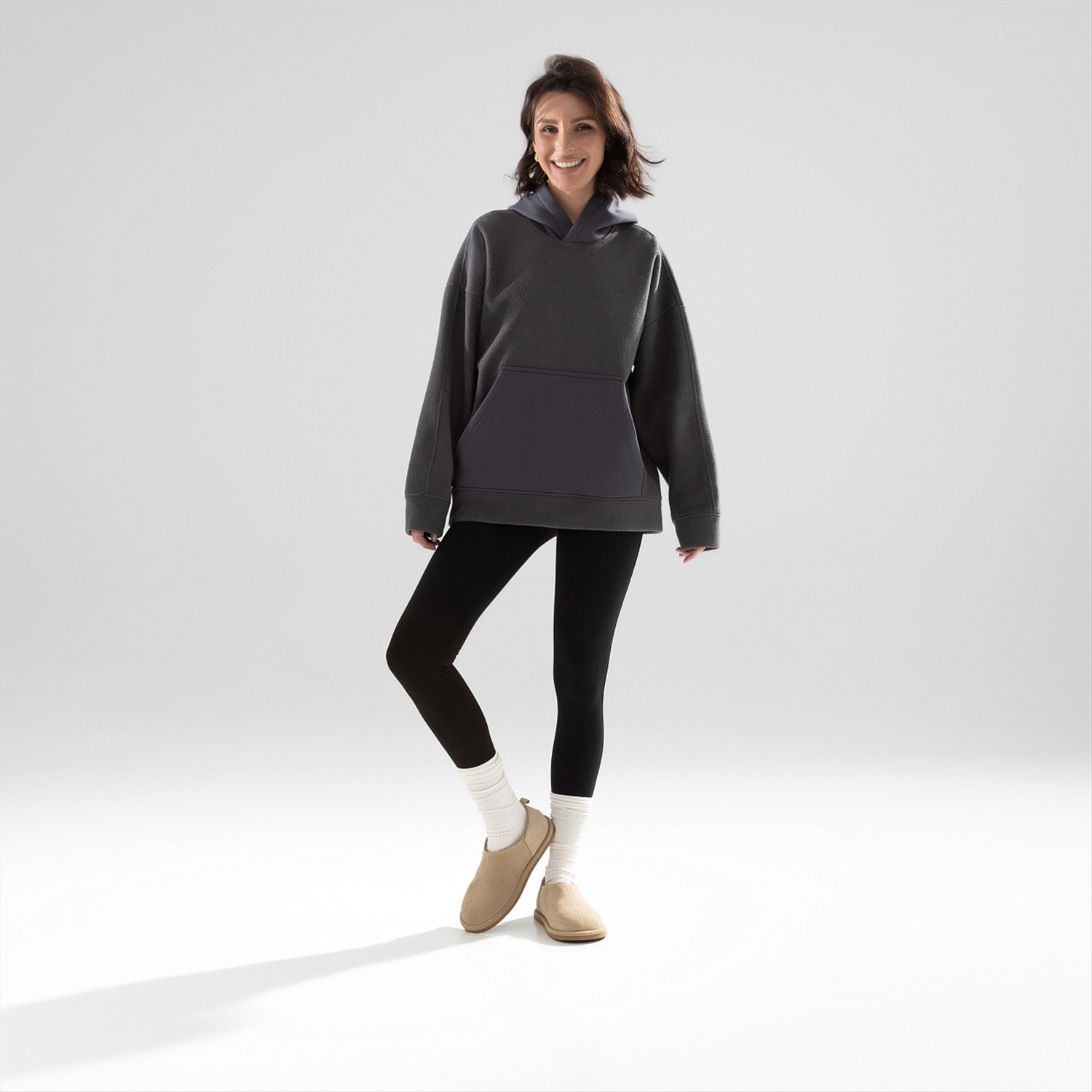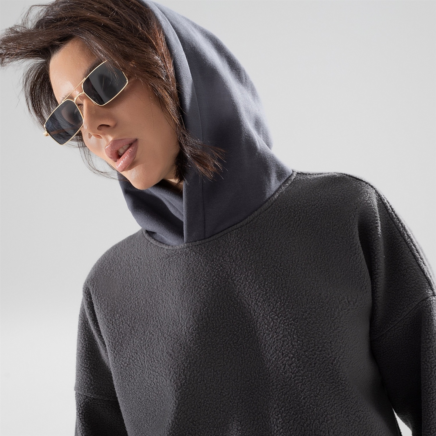 Расслабленный образ может быть роскошным. Если использован трендовый материал из премиальной коллекции, а пошив осуществлен на высшем уровне. Худи качества экстракласса для ваших непринужденных дней. Худи с капюшоном свободного кроя. Комбинация двух видов материала. Линия плеча спущена. Есть карман на передней части изделия.