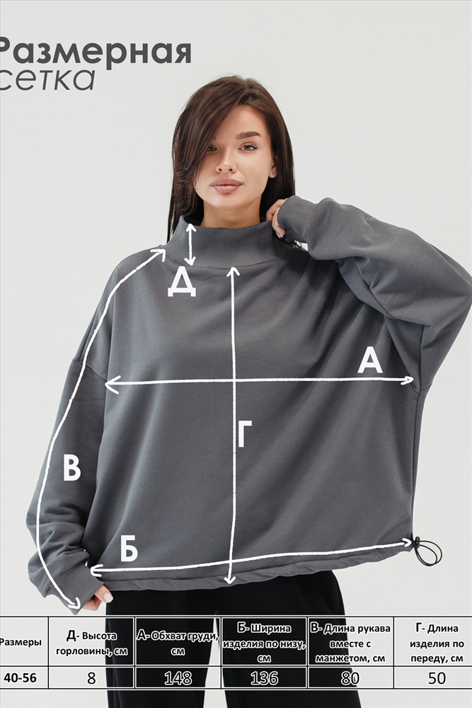 Состав: 80% хлопок, 20% полиэстер Модель: Худи оверсайз Тип товара: худи Материал: футер на флисе Бренд: Iv-trik-stail Сезонность: осень | весна | зима Худи оверсайз выполнена из приятной на теле и практичной ткани футер с мехом. 80% хлопок и 20% полиэстер обеспечивает комфорт, хорошую воздухопроницаемость и долгий срок службы изделия. Размер единый 40-56 благодаря свободному крою идеально подходит для разных типов фигуры и легко сидит как в расслабленном оверсайз, так и в более аккуратном силуэте при подтяжке шнуровки. Модель оснащена воротником стойка, который защищает от ветра и добавляет современной графики образу, а рукав на манжете удерживает тепло и придаёт аккуратную посадку. По низу шнуровка позволяет регулировать объём и экспериментировать с длиной и силой посадки, создавая вариативные образы. Толстовка тёплая и приятная к телу, она выполнена с начесом для дополнительного уюта и комфорта в холодное время года. Начес не линяет и не образует каташки, что сохраняет презентабельный вид даже после многократных стирок и активной носки. Однотонная расцветка делает вещь универсальной базовой частью гардероба и даёт свободу для стильных комплектов. Модель выдержана в стиле y2k, поэтому отлично смотрится в сочетании с ретро-элементами и современными акцентами. Худи прекрасно вписывается в спортивный стиль и одновременно служит надёжной базовой вещью для повседневной носки. Её легко комбинировать с джтинсам или леггинсами, а также с юбками и шортами для более смелых образов. Эта худи практичное решение для тех, кто ценит тепло, комфорт и актуальный городской стиль в одном изделии. Таблица размеров и веса