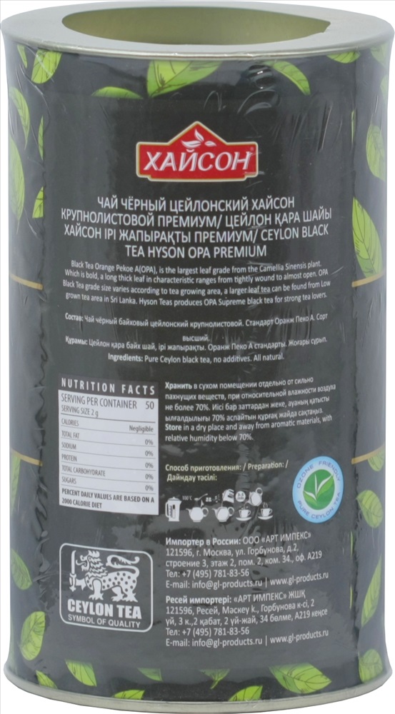 Производство: ШРИ-ЛАНКА Чай черный цейлонский байховый крупнолистовой. Стандарт Orange Pekoe A (OPA).Крупнолистовой черный чай премиального качества. OPA собирается из особо крупных толстых чайных листиков после полного раскрытия из почек. Имеет неоднородное скручивание и высокое содержание ароматических масел. Напиток отличает нежный вкус и тонкий аромат, в котором друг друга сменяют отголоски сухофруктов, пряностей и меда, создавая долгое сладкое послевкусие. Считается одним из самых утонченных сортов цейлонского чая.