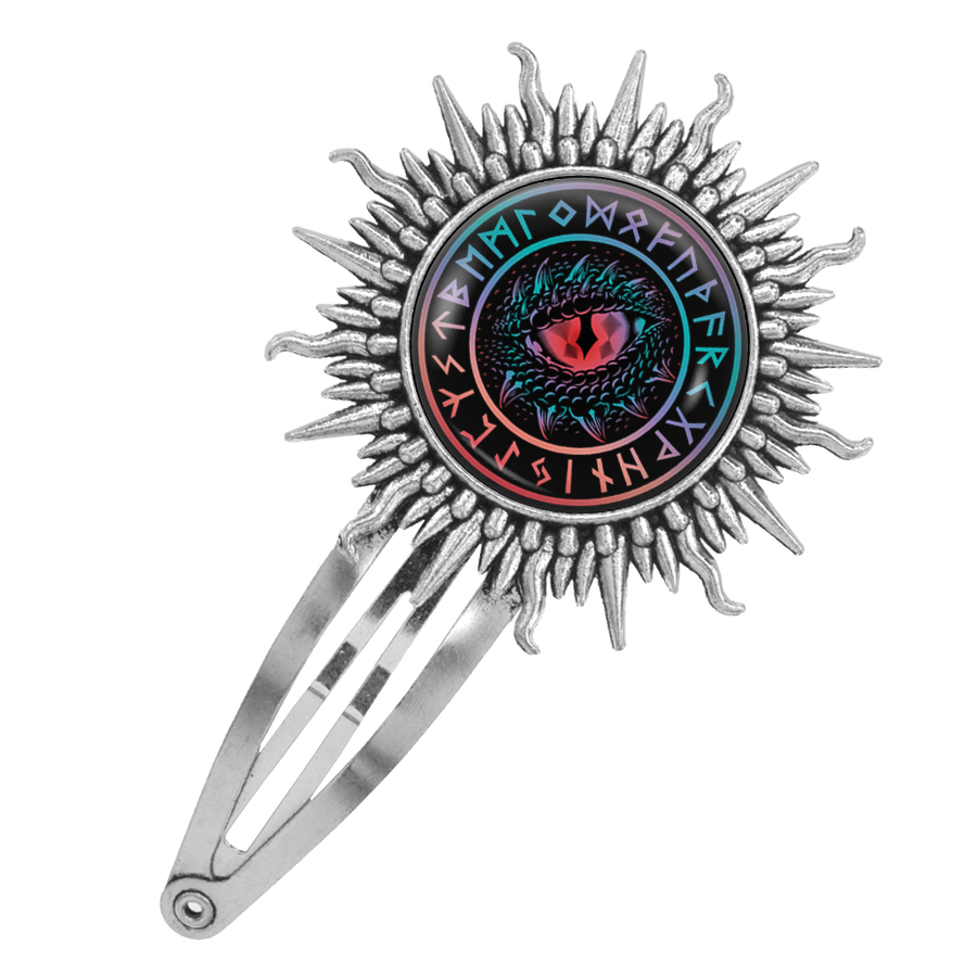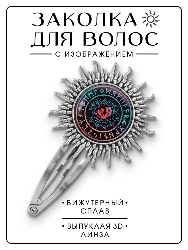 Заколка из бижутерного сплава с покрытием под серебро. Размер заколки: 77х45мм, диаметр изображения: 25мм. Изображение защищено выпуклой стеклянной линзой. Товар упакован в прозрачный пакет. Без описания.