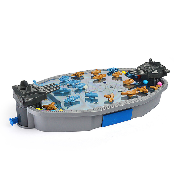 Наличие: >10 Настольная игра «Морской батл» - эта динамичная и увлекательная игра перенесет вас в эпицентр морских баталий, где ваша стратегическая мысль и меткость решат исход сражения. Представьте, как ваши корабли, гордо возвышающиеся на волнах игрового поля, готовы к решительной схватке. Установите дуло пушки на платформу, кораблики на поле в специальные отверстия. Поместите цветные шарики в пушки и нажмите пускатель. Состав игры: - игровое поле с пружинным блоком и отверстиями под боевые корабли (13х5х40 см) - 1 шт. - башни с пушками (10,7х4х9 см) -2 шт. - корабли, золотые и синие (от 3 до 4 см) - 20 шт. - крепление для кораблей (1 см) - 20 шт. - снаряды (шары разных цветов 1 см) - 30 шт. Рекомендовано для детей от 6 лет Комментарии к товару
