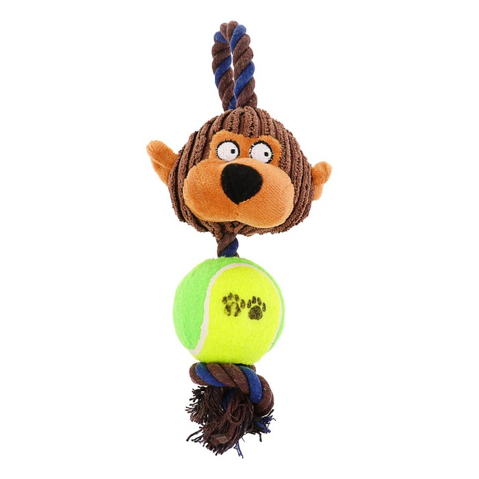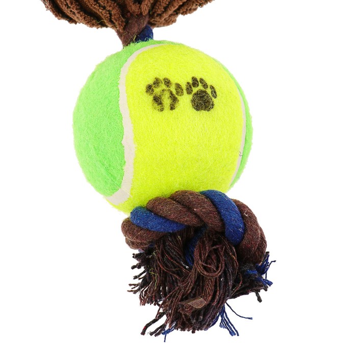 Игрушка для собак 3-в-1 "Обезьяна": канатная, мягкая с пищалкой, войлочный мяч, 30 см