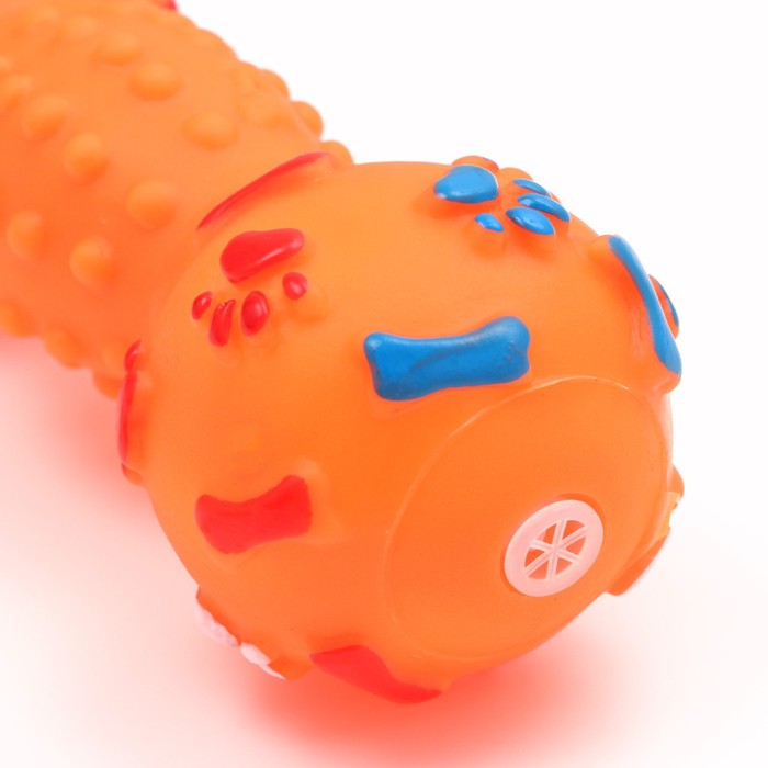 Игрушка изготовлена из безопасного материала и не предназначена для разгрызания. Во время игр виниловые игрушки можно жевать, благодаря этому они массируют дёсны и отчищают зубы собаки от налёта. Таким образом во время игр совмещается приятное с полезным.