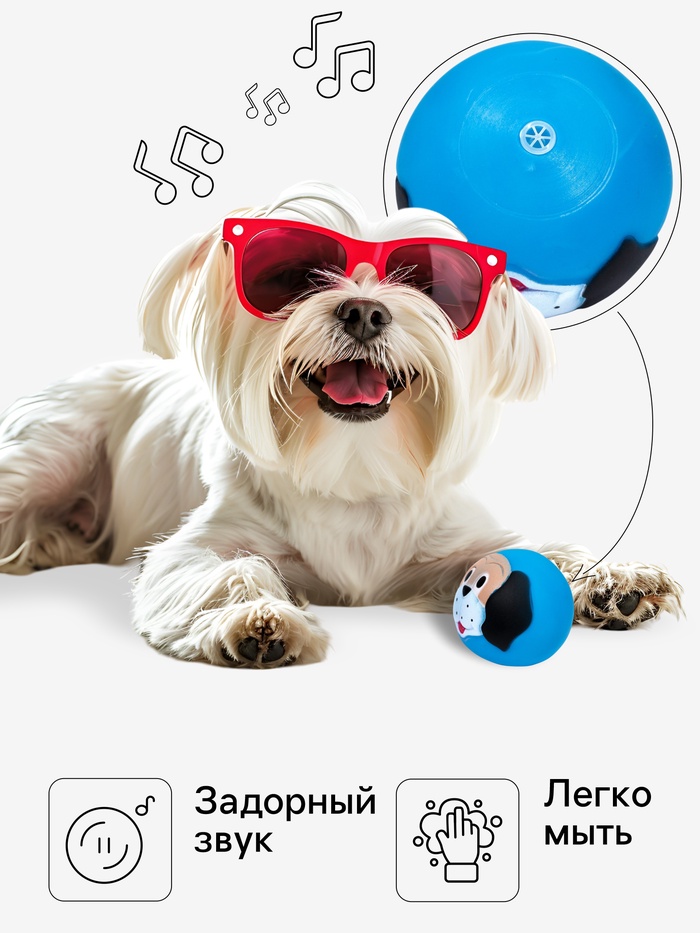 Игрушка пищащая "Песик" для собак, 7 см, синяя