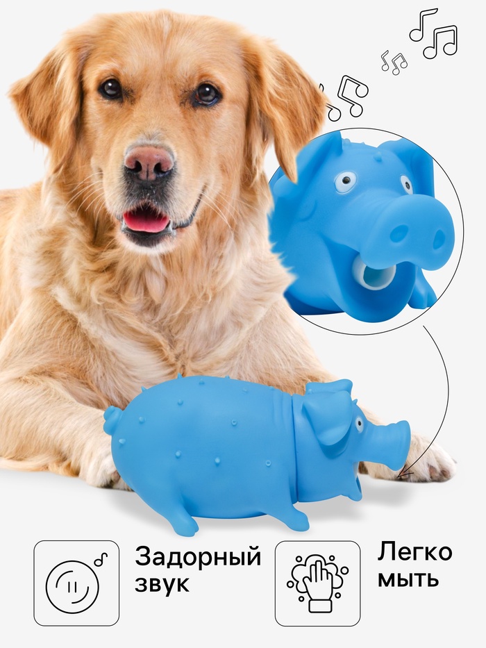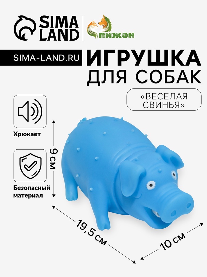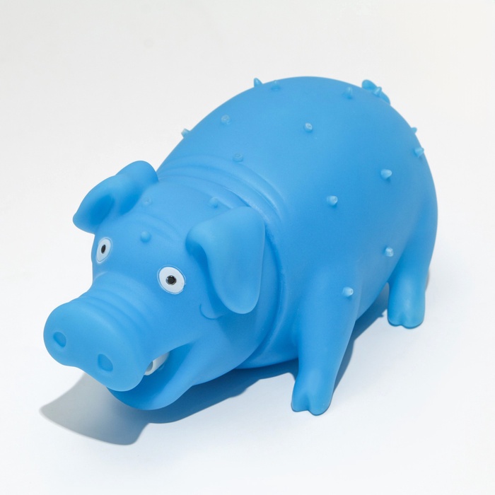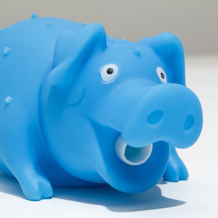 Игрушка пищащая "Весёлая свинья" для собак, хрюкающая, 19,5 см, голубая