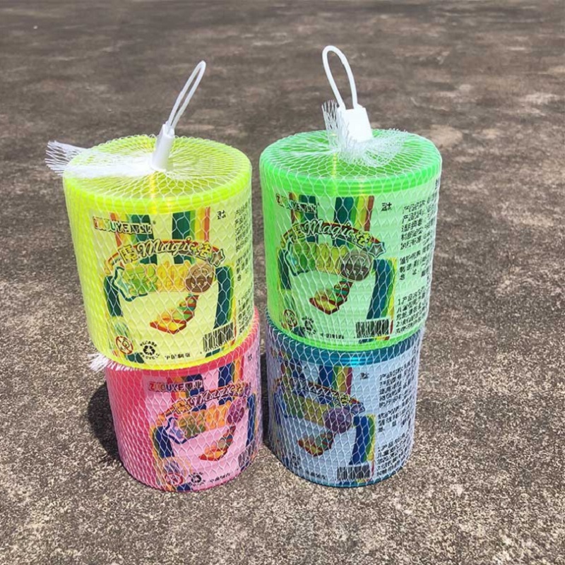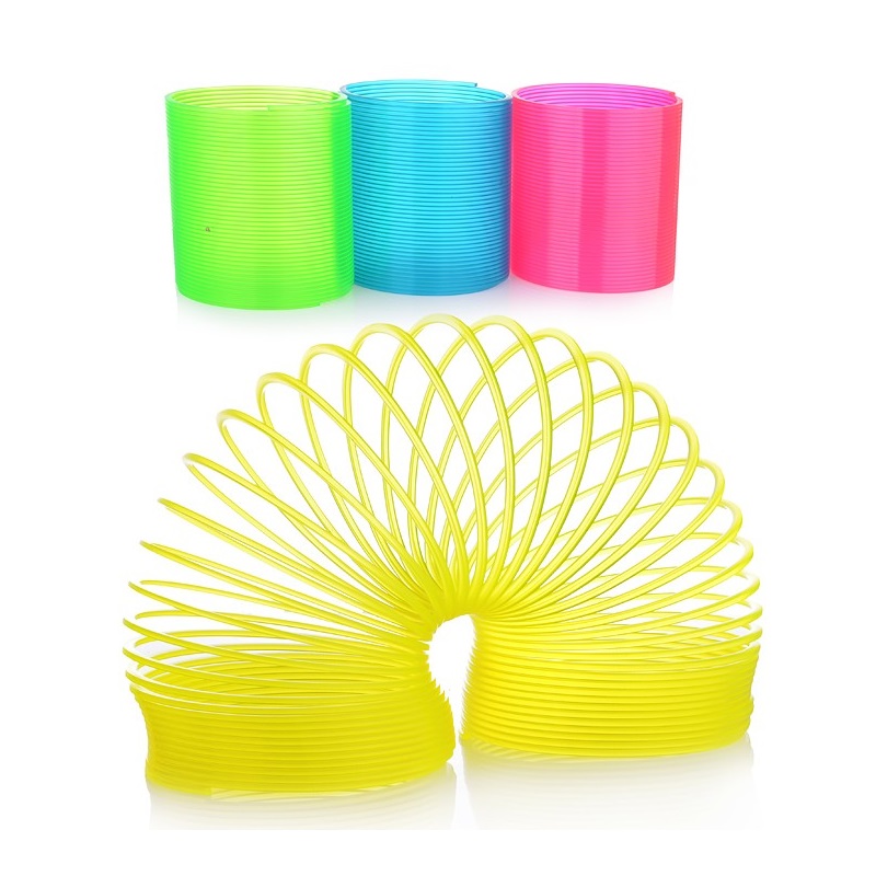 же была популярной еще одна игрушка – шагающая пружинка.Легендарная Слинки до сих пор вызывает восторг у детей и взрослых. Она завораживает, красиво переливаясь из руки в руку, напоминая радугу, и при этом забавно трещит. С ней можно выполнять эффектные трюки, растягивать, перекидывать, бросать и, конечно же, пускать с лестницы.Со спиралькой весело играть детям, она успокаивает нервы взрослым, а на рабочем столе может выполнять функцию подставки для карандашей и ручек.Волшебная пружинка тренирует координацию рук и зрение у малышей, дарит положительные эмоции и служит отличным антистрессом.Яркая пружинка классической круглой формы, большого размера, однотонного цвета.Материал: пластик. Размер около: 8,5х9,5 см. Цвета: зеленый, синий, розовый, желтый. Упаковка: сетка.