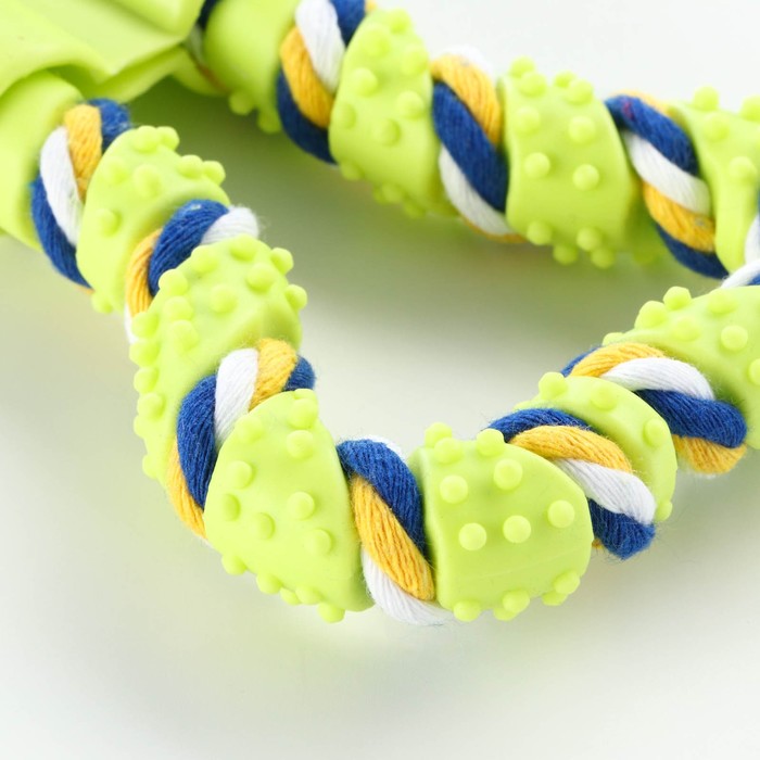 Производитель: Пижон; Габариты: 19,5 x 8 x 2; Фасовка: по 12 шт; Цвет: Зелёный; Материал: Термопластичная резина, Текстиль; Страна: Китай; В боксе: 200 шт; Состав: Пластик, текстиль; Материалы: пластик, текстиль; Индивидуальная упаковка: Без упаковки; Габариты товара: 19,5 см × 9,5 см × 2,3 см; Сертификат: Не подлежит сертификации; Порода/размер: Для всех пород; Вид: Канат