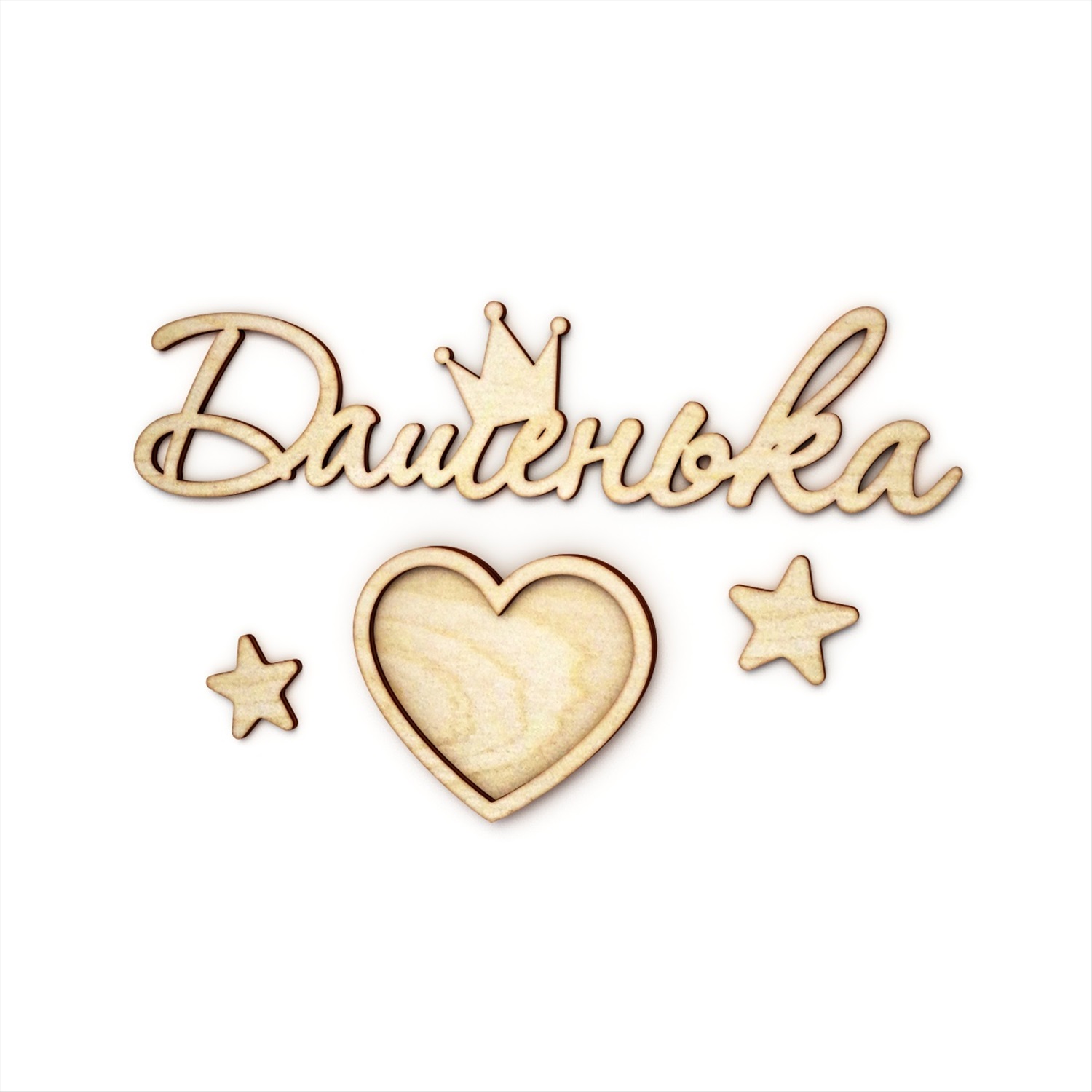 Имя Дашенька с рамкой в виде сердечка, звездами и короной.