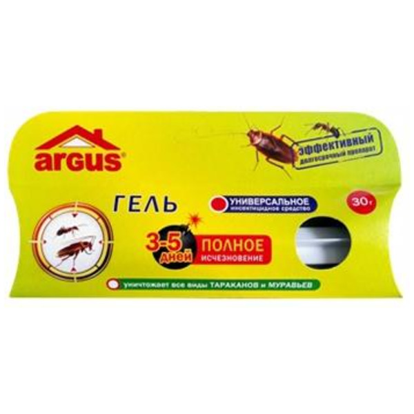 ARGUS гель от тараканов и муравьев (30г)- это надежное и эффективное инсектицидное средство, для уничтожения всех видов тараканов и муравьев.