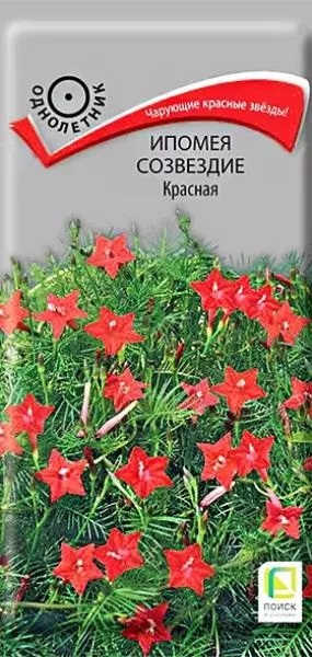 Оригинальное вьющееся растение. Стебли длиной до 2 м. Привлекательные резные листья. Многочисленные звездчатые цветы красной окраски, диаметром 2-3 см. Обильное цветение. Используется для вертикального оформления цветников различного назначения.