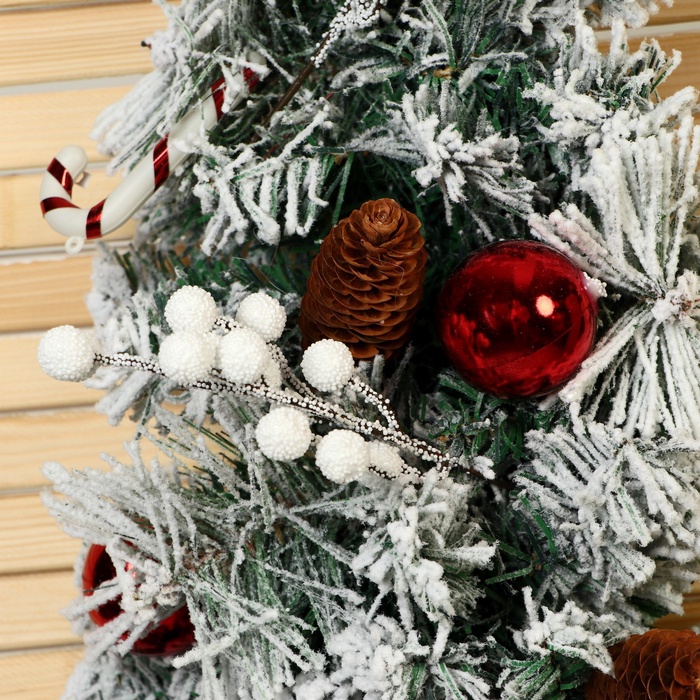 Эта ёлка делает любое помещение частью вашей личной зимней истории. Зелёные тона, дополненные заснеженными акцентами и красными ягодами, работают вместе, чтобы передать дух чуда и семейное ожидание праздника. Используйте её как самостоятельный элемент или как фон для других украшений — одинаково хорошо усиливает атмосферу торжества и доброжелательность дома.