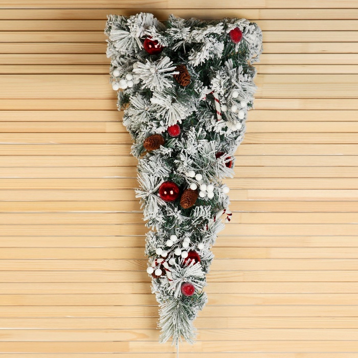 Настенная ёлка «Уютная сказка», 67 см, с ягодами и шишками — это мягкий и атмосферный элемент новогоднего убранства. Подвесная модель высотой 67 см выполнена из ПВХ-веток с отгибающимся креплением, имеет зелёную хвою и декор белого и красного цветов — украшение в универсальном стиле, сочетающем мотивы ар-деко, советского дизайна и скандинавской простоты. Идеальное решение для тех, кто ценит свет, объём и зимнюю атмосферу в формате настенного или дверного оформления.