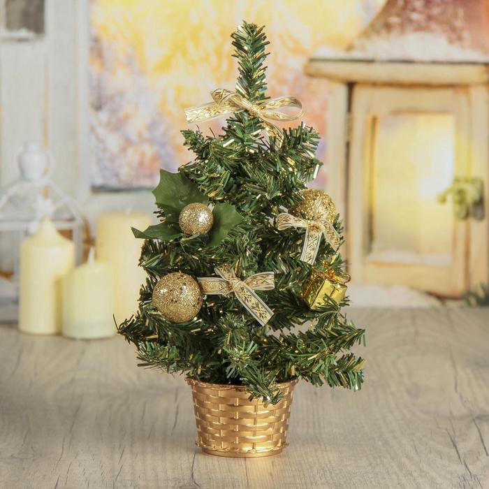Производитель: Зимнее волшебство; Габариты: 7 x 7 x 25; Стиль: Советский, Классика, Ар-деко, Фьюжн, Новогоднее барокко; Цвет декора: Золотистый; Страна: Китай; В боксе: 96 шт; Состав: Металл, пластик, текстиль; Материалы: металл, пластик, текстиль; Фасовка: по 1 шт; Индивидуальная упаковка: Пакет; Сертификат: Не подлежит сертификации; Набор: Нет; Высота, см: 25; Диаметр нижнего яруса, см: 15; Символ года: Нет; Тематика праздника: Новый год; Материал: Пластик; Работает от сети: Нет; Свет: Нет; Тип ёлки: Настольная; Тип веток: ПВХ; Крепление веток: Отгибающиеся; Особенности декора: Ёлочные украшения; Цвет хвои: Зелёный