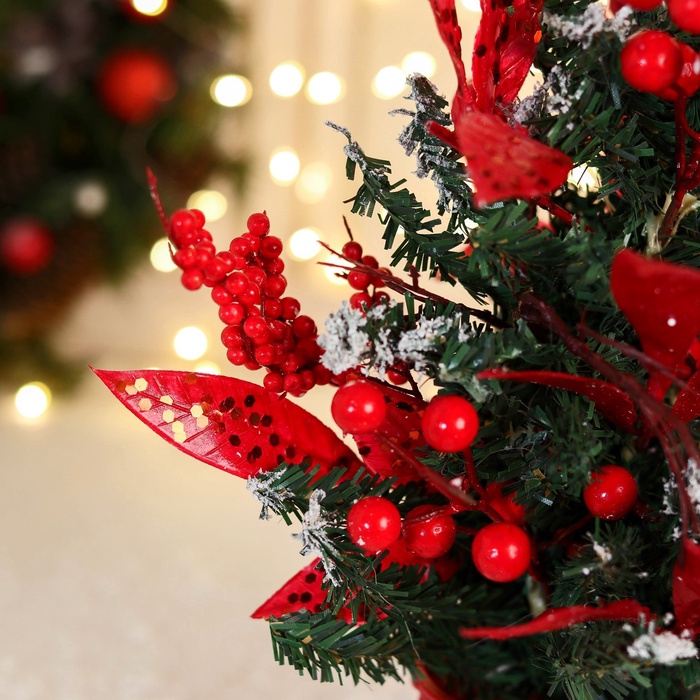 Праздник начинается с одного взгляда на красные шары Эта ёлка делает рабочий стол или угол комнаты частью вашей личной зимней истории. Зелёные тона и яркие красные акценты работают вместе, чтобы передать дух Нового года и ожидание подарков. Используйте как самостоятельный элемент или как часть комплексного оформления — одинаково хорошо усиливает атмосферу чуда и семейное тепло. Комментарии к товару