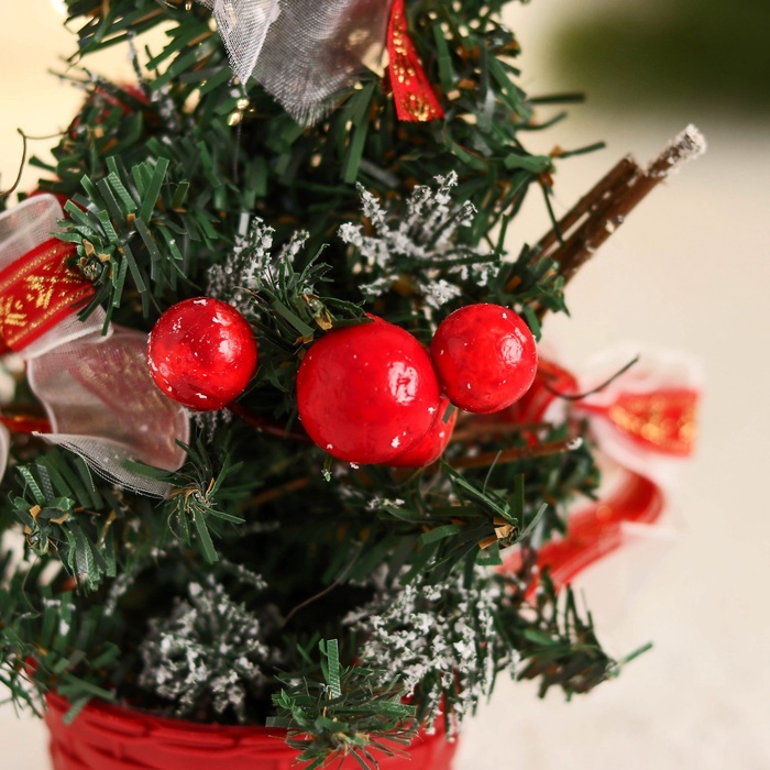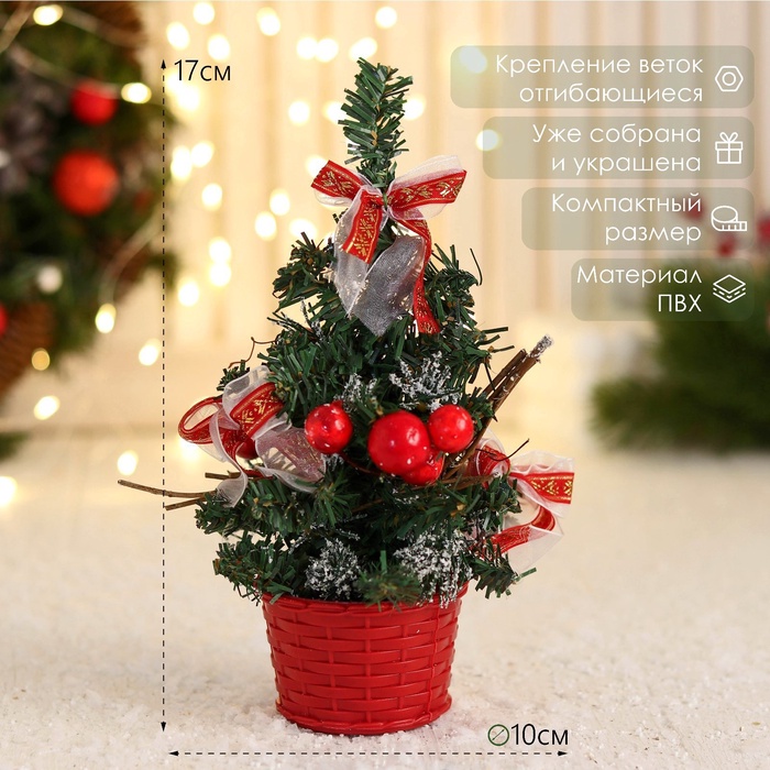 Искусственная ёлка настольная «Зимнее волшебство. Праздничная», бантик в полоску, 10×17 см, ПВХ ветки отгибаются