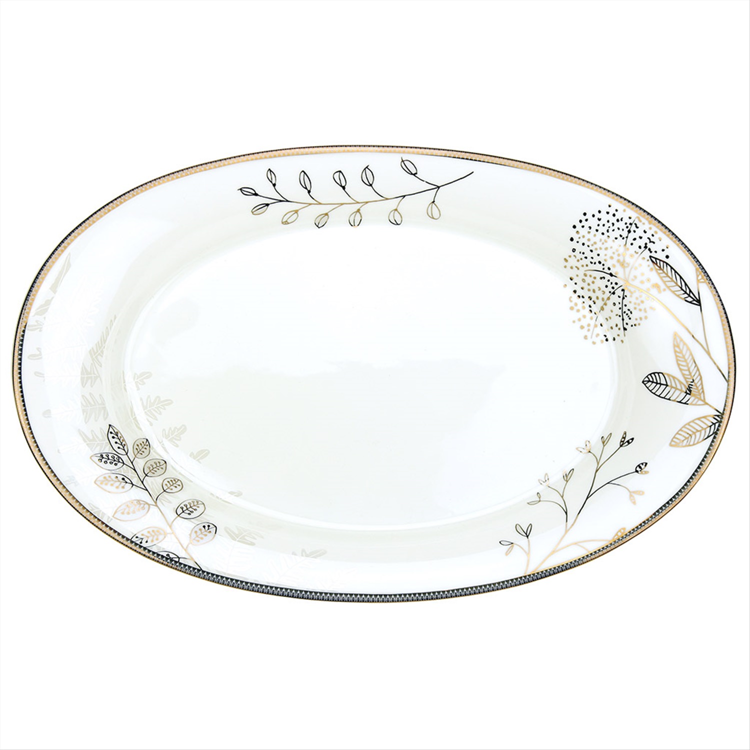 "Июль" Блюдо овальное костяной фарфор 338х218х40мм, с деколью, платиновая отводка (Китай)