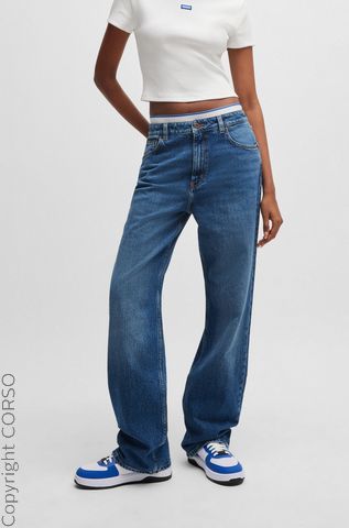 Производитель: HUGO Blue Gerade geschnittene Straight-Fit Jeans für einen lässigen Look, High Waist - Hoher Bund für eine betonte Taille und einen flachen Bauch, Auch in Tall Größen erhältlich, beginnend bei einer Länge von 34 Zoll, Langlebiger und stabiler Jeansstoff für eine lange Lebensdauer, Elastisches Denim Material für hohen Tragekomfort und Bewegungsfreiheit, Obermaterial: 99% Baumwolle, 1% Elasthan, Länge 34