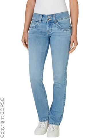 Artikelfarbe: light blue u Marke: Pepe Jeans Sortiment: Da. Jeans Größen-Kategorie: Normalgrößen Inverkehrbringer: PEPE JEANS, S.L., Carretera Laurea Miro 403, 8980 Sant Feliu de Llobregat, Spanien, Tel.- 666011559, E-Mail- germany@pepejeans.com Jeans GEN von Pepe Jeans, Aus Materialmix mit Stretch-Anteil für ein tolles Tragegefühl und eine perfekte Passform, Mit geradem Beinverlauf und Doppel-Knopf-Bund, In toller Qualität mit Taschen, Cool kombinierbar mit T-Shirt und Sneakern für einen casual Look, Obermaterial: 92% Baumwolle, 6% Polyester, 2% Elasthan, Länge 30