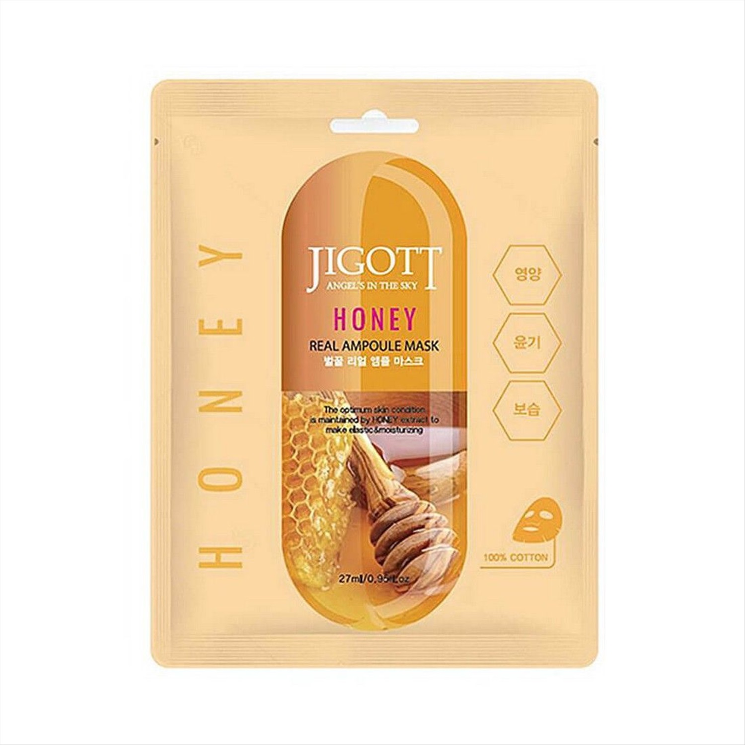 Ампульная маска Jigott Honey Real Ampoule Mask с экстрактом мёда ухаживает и преображает кожный покров благодаря насыщению клеток живительной влагой, полезными и питательными веществами. Средство разработано на основе активных компонентов природного происхождения, среди которых мед — мощный антиоксидант, омолаживающий и антивозрастной агент, а также прополис, богатый большим количеством аминокислот, полифенолов, микроэлементов и ферментов, необходимых для правильного функционирования кожного покрова.