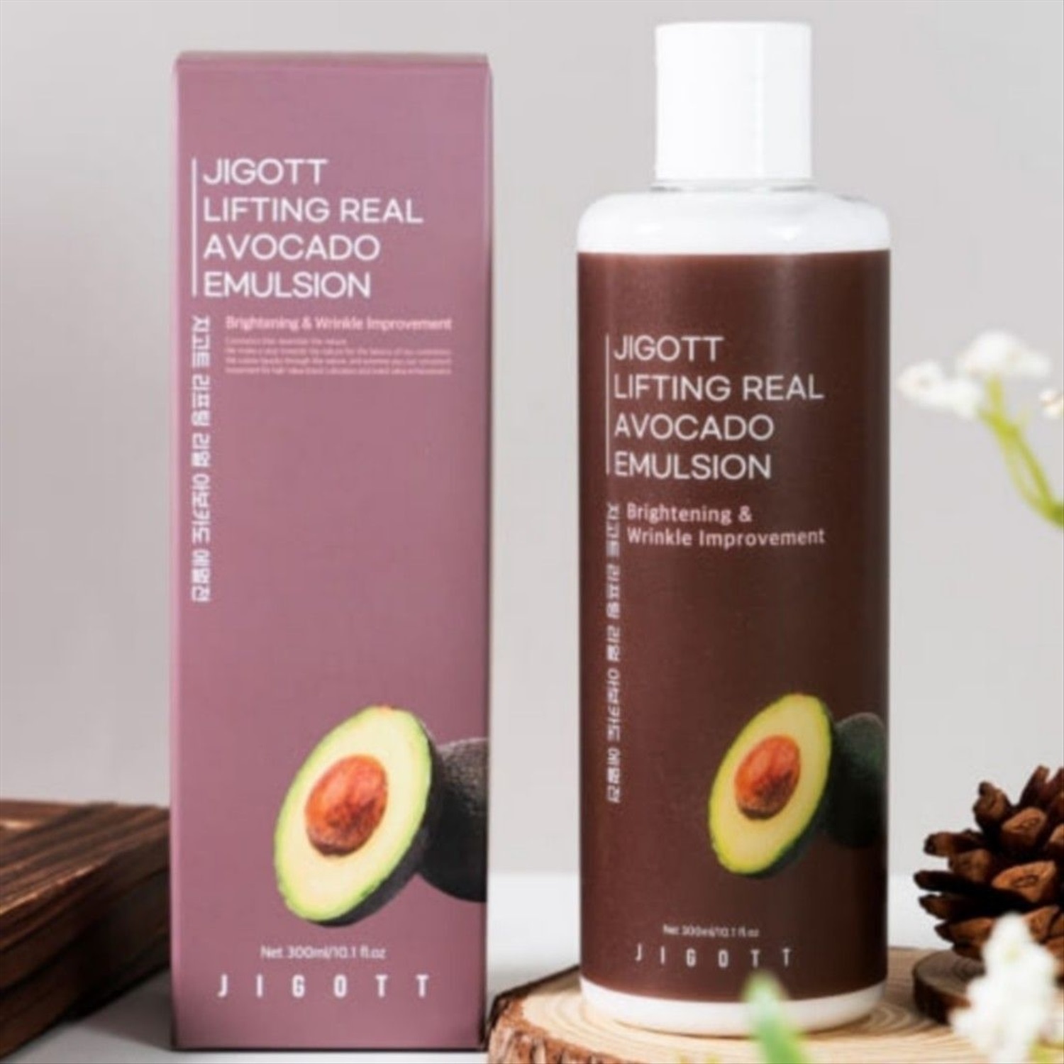 Эмульсия с лифтинг эффектом с экстрактом авокадо Jigott Lifting Real Avocado Emulsion оказывает омолаживающее действие, разглаживает рельеф, уменьшает выраженность морщин. Она глубоко увлажняет и питает кожу, восстанавливает ее и смягчает, противостоит появлению дряблости и провисания, делает кожу упругой и красивой. Экстракт авокадо насыщает кожу жирными кислотами и витаминами, восстанавливает липидный барьер. Он уплотняет и укрепляет кожу, сохраняет ее свежесть и тургор, имеет высокие антивозрастные свойства. Пробиотики составе насыщают кожу полезными веществами и витаминами, оздоравливают микробиом кожи, способствуют развитию правильной микрофлоры на поверхности кожи. Экстракт ромашки эффективно работает с воспалениями, обладает антибактериальными и успокаивающими свойствами. Запускает процессы регенерации в коже, значительно снижает ее реактивность.