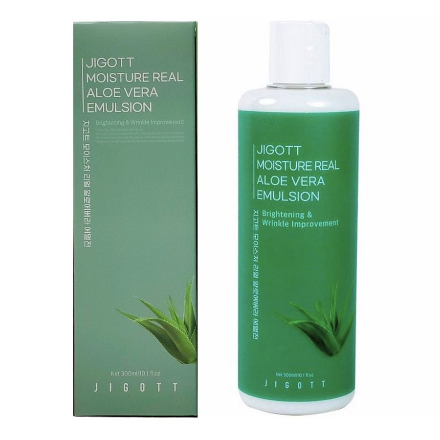 Увлажняющая эмульсия с экстрактом алоэ Jigott Moisture Real Aloe Vera Emulsion освежает кожу, обогащает ее полезными веществами, улучшает общее состояние. Она гидрирует кожу, сохраняет влагу внутри и препятствует ее испарению. Оказывает противовоспалительное действие, заживляет ранки и повреждения. Экстракт алоэ в составе успокаивает и помогает уменьшить воспаление кожи, он увлажняет ее, при этом оставляет поры чистыми, не закупоривает их. Он положительно влияет на микрофлору кожи, оказывает умеренное бактерицидное действие. Экстракт гамамелиса успокаивает и тонизирует кожу, оказывает противовоспалительное и ранозаживляющее действие, очищает и сужает поры. Экстракт ромашки эффективно работает с воспалениями, обладает антибактериальными и успокаивающими свойствами. Запускает процессы регенерации в коже, значительно снижает ее реактивность.