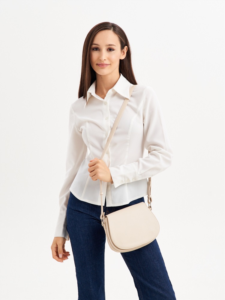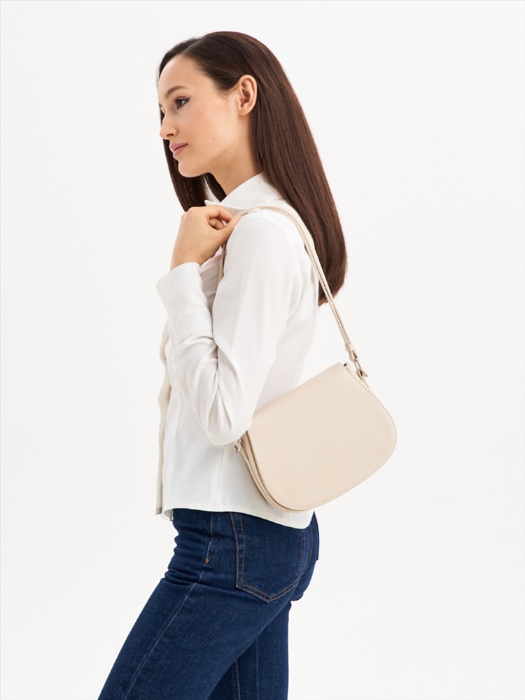 Бренд: Jane's Story Вид изделия: Женская сумка Материал изделия: Экокожа Форма сумки: Сэтчел / Кросс-боди Основной цвет: Белый Ширина (см): 22 Высота (см): 17 Глубина (см): 6 Длина плечевого ремня: 120 Состав: 100% Экокожа Количество отделений: 1 Вид застежки: клапан,магнит,молния Цвет фурнитуры: хром Подклад: Полиэстер Подарочная упаковка: Нет Объем (л): 2 Каркас: жесткий Вес (г): 530 Гарантия: 3 месяца, Женская сумка в форме седло выполнена из матовой экокожи , которая имеет мягкую и матовую фактуру. Сумка сэтчел с жестким каркасом. Габариты сумочки - (ВхШхГ) 17х22х6 см. Основное отделение на подкладе из плотного полиэстера закрывается на клапан с магнитом и надежную молнию. В комплекте плечевой ремень, регулируется по длине до 120 см., поэтому сумку можно носить в руке, на плечо и через плечо как кроссбоди. Фурнитура выполнена из металла в серебристом цвете. Сумка с застежкой поставляется в текстильной (пыльник) и полиэтиленовой упаковке, что защищает ее от повреждений, а также позволяет удобно хранить женскую сумочку в дальнейшем использовании. Комментарии к товару