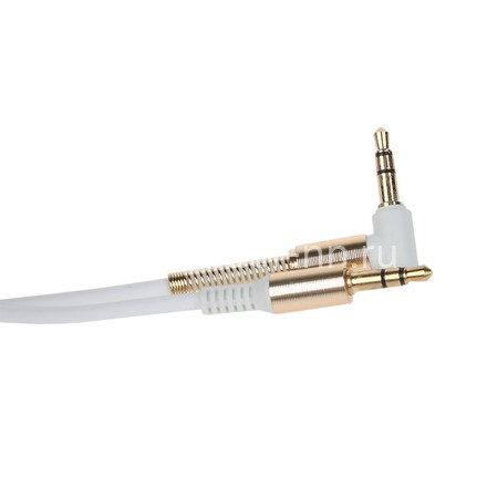 Кабель AUX 3.5 на 3.5 Am-Am (1м) 2-х контакт/L-коннектор с пружиной белый (без упаковки)