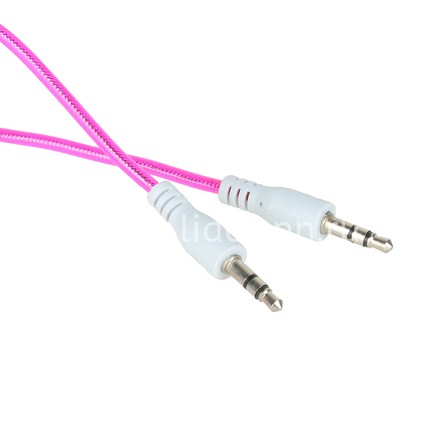Кабель AUX 3.5 на 3.5 Am-Am (1м) 2-х контактный круглый ПРОЗРАЧНЫЙ розовый (без упаковки)
