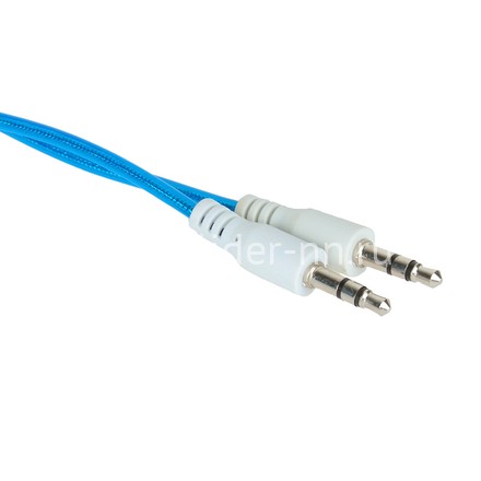Кабель AUX 3.5 на 3.5 Am-Am (1м) 2-х контактный круглый ПРОЗРАЧНЫЙ синий (без упаковки)