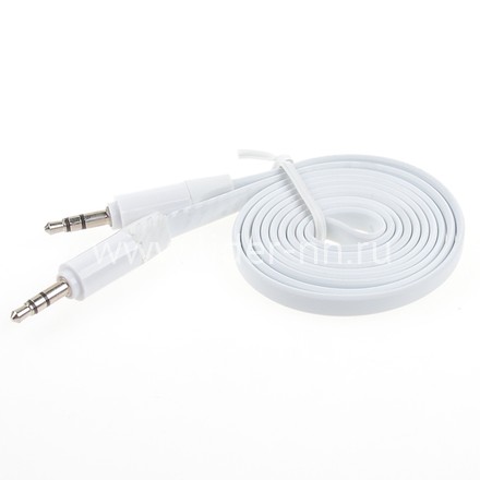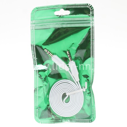 Кабель AUX 3.5 на 3.5 Am-Am (1м) 2-х контактный ПЛОСКИЙ ШИРОКИЙ белый (без упаковки)