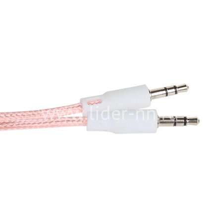 Кабель AUX 3.5 на 3.5 Am-Am (1м) 2-х контактный текстильный розовый (без упаковки)