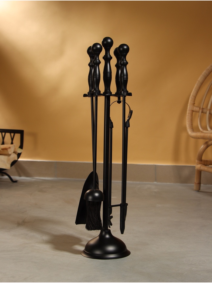 Габариты: 17 x 16 x 66; Страна: Индия; В боксе: 2 набор; Состав: Сталь; Материалы: сталь; Фасовка: по 1 набор; Индивидуальная упаковка: Картонная коробка; Габариты товара: 14 см × 14 см × 64 см; Сертификат: Не подлежит сертификации; Цвет: Чёрный; Вид: Каминный набор