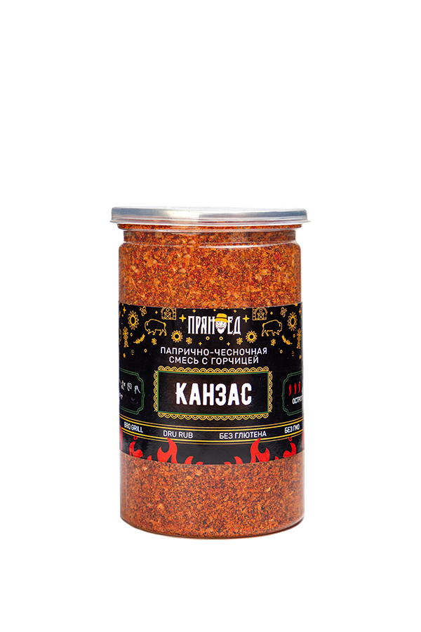 КАНЗАС RUB BBQ, папрично-чесночная смесь с горчицей ПРЯНОЕД - 200 г (банка)