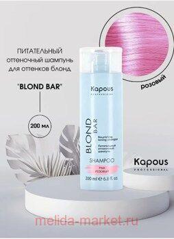 Kapous Professional Blond Bar Питательный оттеночный шампунь для оттенков блонд, Розовый, 200 мл для придания и поддержания цвета волосам оттенков блонд.