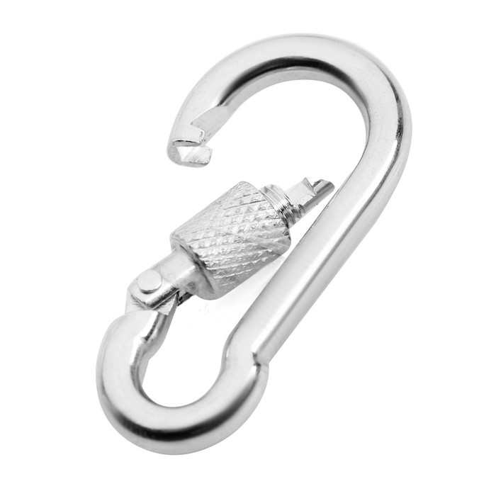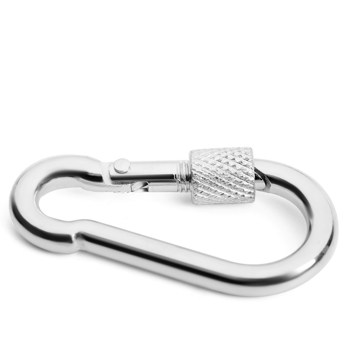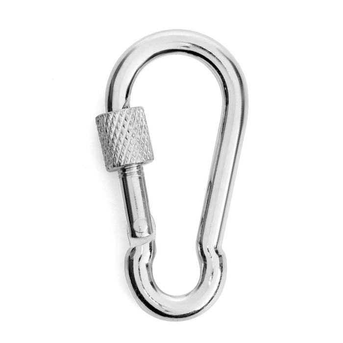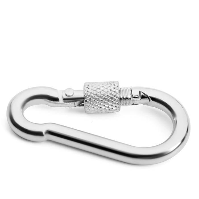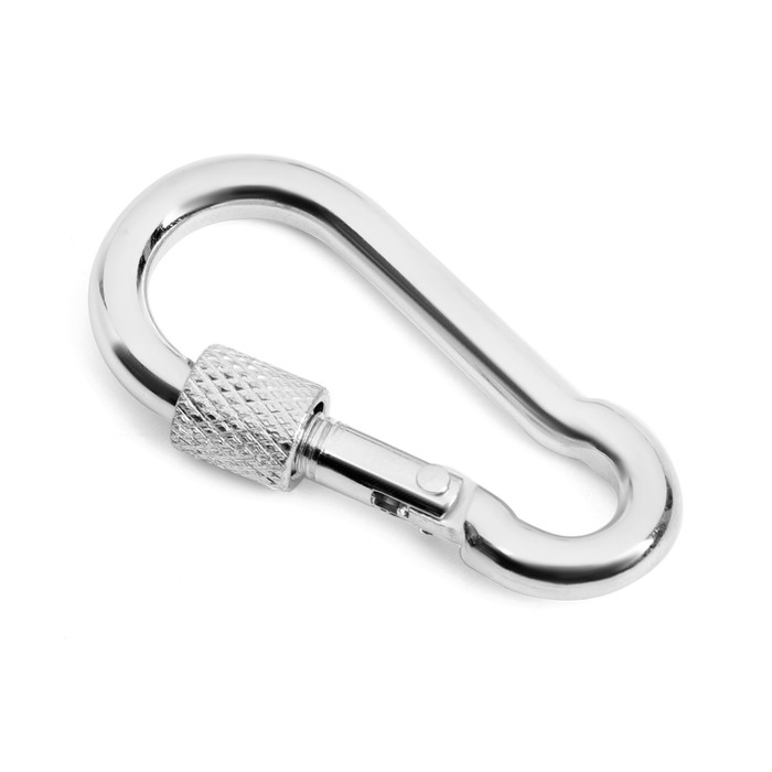 Производитель: ТУНДРА; Габариты: 5 x 2,5 x 0,8; Страна: Китай; В боксе: 1400 шт; Состав: Металл; Материалы: металл; Фасовка: по 1 шт; Индивидуальная упаковка: Пакет; Габариты товара: 5 см × 2,5 см × 1 см; Сертификат: Не подлежит сертификации; Цвет: Хромированный; Диаметр, мм: 5; Длина, мм: 50; Maксимальная нагрузка, кг: 90; Вид карабина: С фиксатором