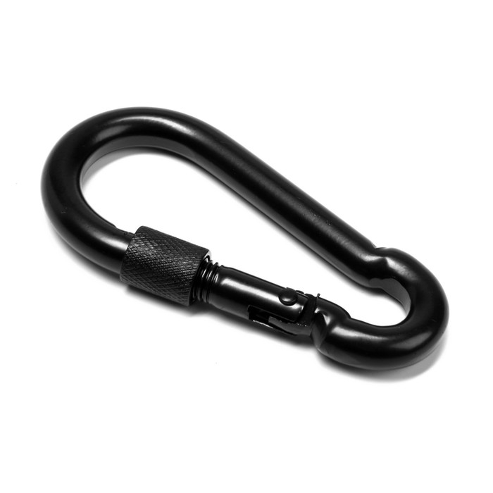 Карабин монтажный с фиксатором ТУНДРА krep, DIN5299D, 9×90 мм, черный, 1 шт.