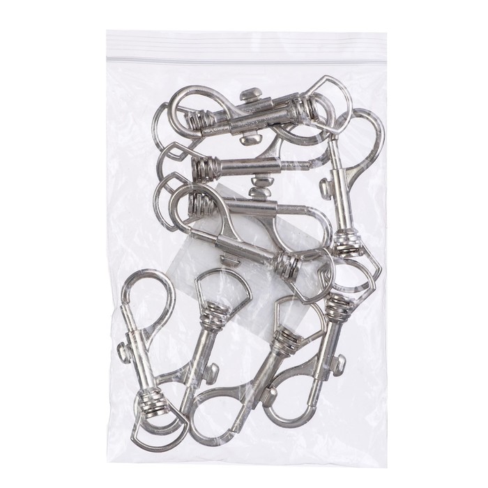 Производитель: Пижон; Габариты: 10 x 7 x 1,5; Страна: Китай; В боксе: 990 шт; Состав: Металл; Материалы: металл; Фасовка: по 10 шт; Индивидуальная упаковка: Пакет; Габариты товара: 6,4 см × 2,5 см × 1 см; Сертификат: Не подлежит сертификации; Цвет: Серебристый; Диаметр, мм: 64; Длина, мм: 6,4; Вид карабина: Карабин с вертлюгом; Фиксированная цена: Да